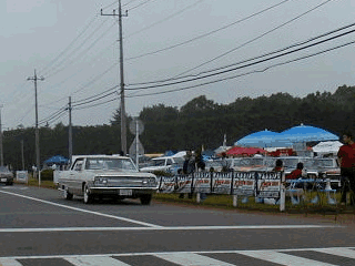 恐らくSuper American Festivalの花形といっていいのでしょう。一台ごとにセットアップが完了した所で、先導車に導かれ、レース待ちの車に割って、スタートポジションに進入して来ます。