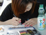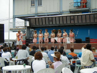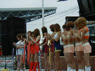 さて、ステージ上ではHappieという女の子達のコンサートがDJをはさんで始まっていて、Festivalに花を咲かせています。この日のステージは2回構成で、Happieのコンサート、パラパラの女の子達のショー、レースクィーンとDJのトークショーがあり、合間にHip&Hop DJのLIVE、元ジュディー&マリーのベーシストを迎えたBAND LIVEとバラエティにとんだ内容で進行していきます。
