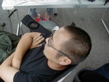 どんなに大きな熱気で盛り上がるイベントでも、途中に一度は息抜きのような「まったり」した時間が生まれます。相変わらずDJマッスル力也は身体一杯汗をかきながら、喋り続けています。