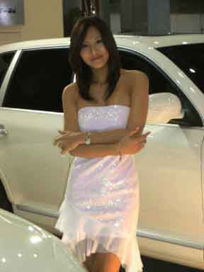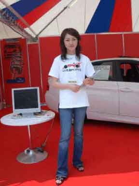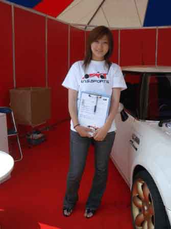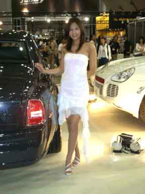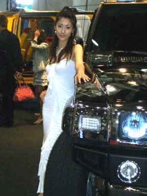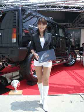 お待たせしました、コンパニオンの皆さんです。カメラを構えると微笑んでくれる人、いやーな顔をする人・・・、いろいろいましたが、このイベント自体が過激なコンパニオンを禁止しているため、ちょっと残念そうなカメラマンHIDEさんでした。