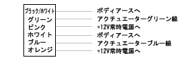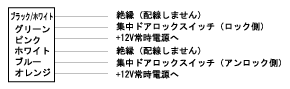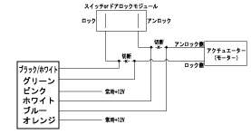 ロックノブもしくはロックスイッチでロックした時、ロッ ク線に+12Vが流れ、アンロックしたときにアンロック線